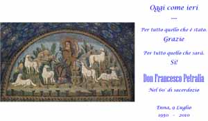 Con queste parole il vescovo della Diocesi di Piazza Armerina, mons. Michele Pennisi, ha reso omaggio a mons. Francesco Petralia che ha festeggiato 60 anni di sacerdozio.