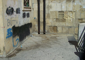 “I ragazzi bevono come spugne e chissà cos’altro fanno –denuncia il cartolaio Antonino Catania- e l’indomani noi dobbiamo raccogliere i cocci di bottiglie rotte che i passanti fortuitamente fanno cadere qua sotto, in alcuni casi sono state colpite anche delle vetture in sosta. Da tempo –continua il negoziante- chiedo all’amministrazione comunale di installare una rete di protezione ma dicono di non avere soldi». Naturalmente Catania, che parla a nome dei suoi colleghi e vicini chiede anche più vigilanza:«capisco benissimo che i vigili urbani non sono in servizio in determinate ore –afferma- ma potrebbero piazzare una telecamera sul muro del comune accanto alla ragioneria per inquadrare quella zona e scoraggiare i vandali”. A rispondere è il comandante dei vigili urbani Loris Giannuzzo che afferma: “tempo fa abbiamo partecipato ad un bando europero per la videosorveglianza ma il nostro progetto non è stato ammesso a finanziamento. Con quelle somme –continua- avremmo coperto tutti i punti strategici, invece ora avendo nel capitolo 15mila euro possiamo installare solo 4 telecamere professionali in punti del paese dove potremo monitorare spazi più ampi, non è possibile controllare quell’angolo”.