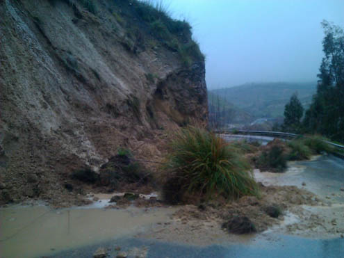 Valguarnera. Causa le intense piogge è chiusa al traffico in attesa che intervenga la Provincia regionale di Enna la SP 4 vecchio tracciato che collega il Comune con la SP 4 a cuasa del colamento del terreno circostante.