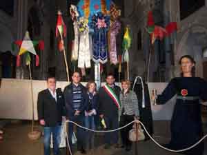 Barrafranca. Inaugurata ieri mostra sulla settimana santa all’interno della Chiesa San Francesco di piazza Regina Margherita con l’esposizione della vecchia struttura de U Trunu, “u firrizzu” e “a sfera” portato a spalle il venerdì Santo e datate 1821. Si registra anche la presenza degli apostoli, i cosiddetti Santoni che, come da tradizione, percorreranno la via dei santi nel giorno della domenica di Pasqua. Ad inaugurare la mostra il sindaco Angelo Ferrigno e l’assessore comunale Stella Arena assieme a rappresentanti di alcune associazioni locali come Arcobaleno, Pro Loco, Ceur, Aics e Ranger. “ Ringrazio tutti coloro che hanno collaborato per l’ottima riuscita di questa manifestazione che durerà per tutto il tempo della Pasqua – affermano il sindaco Ferrigno e l’assessore Arena – e ringraziamo anche i parroci e la signorina Marianna Ferrigno così come i proprietari dei Santoni”.