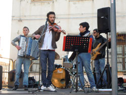 Non si può stare semplicemente a guardare. Per queste ragioni ho deciso di venire a Troina per dire ai mafiosi che il tempo della speculazione sui cittadini liberi è finito, che devono smetterla di rubare soldi e speranze ai lavoratori”. Dopo aver pronunziato il suo discorso, Crocetta si è trattenuto ancora per qualche ora a Troina per ascoltare il concerto del gruppo musicale giovanile “Officina” (nella foto), che hanno cantato canzoni della Resistenza e della liberazione dall’oppressione nazi-fascista e di lotta alla mafia.