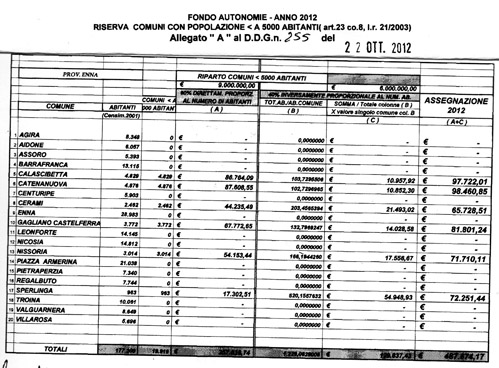 Con D.D.G. n. 255 del 22/10/2012 , è stato approvato il Riparto del fondo Autonomie Locali in favore dei Comuni per l’anno 2012, come da parere espresso dalla Conferenza Regione Autonomie Locali nella seduta del 18 settembre 2012.