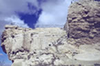 – l’altra a sud-ovest, meno larga e con dei gradini molto alti, riservata ai sacerdoti. Questa scala è ben conservata, i primi otto gradini sono di blocchi di pietra uniti senza malta, gli altri undici sono intagliati nella roccia e sono larghi 2,25 m. Resta questo tuttora l’unico collegamento per potere accedere alla rocca, ma secondo quando scritto da viaggiatori stranieri dell’800 esisteva una rampa che portava direttamente all’ara che sorgeva al centro della rupe.