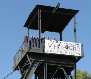 Non ricevono stipendio da ben 8 mesi i 19 precari che lavorano e mantengono attivo il Parco Minerario Floristella-Grottacalda. Questa mattina tutti il lavoratori si sono barricati sul pozzo n. 3 antistante Palazzo Pennisi mostrando uno striscione con la dicitura ”Vergogna – qui regna legalità e onestà”.