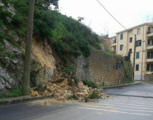 nicosia frana via san giovanniNicosia. Inizio di mese con forti e violente piogge. Franato un tratto del costone su via San Giovanni, l’unica strada di collegamento con l’ospedale e con l’omonimo quartiere. Si sono riversati fango e detriti sulla carreggiata sottostante, nessun danno a cose o persone.