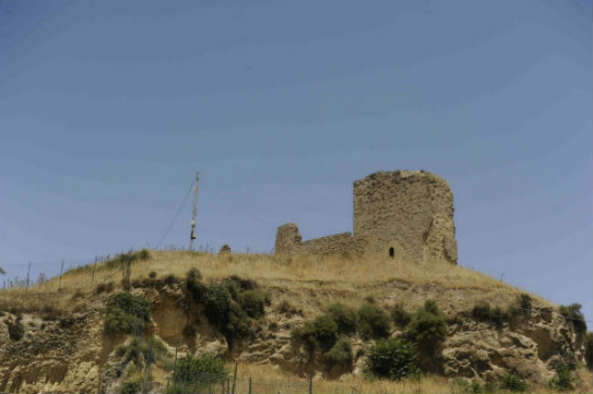 Arrivati nella piazza antistante il Castello si percorre una salita che costeggia le mura esterne e la prima delle torri superstiti, posta sull’angolo Sud-Ovest della cinta e identificata dagli studiosi come Torre C. Continuando il percorso, costeggiamo quello che rimane di una torre ottagona (Torre B per studiosi) posta probabilmente a guardia di quello che doveva essere l’ingresso, ma di cui non ci rimane traccia. Arrivati sul pianoro si distingue chiaramente un’altra Torre, che sembra isolata rispetto al resto delle costruzione (Torre A), che presenta pianta quasi quadrata. Essa sorge a cavallo di una scarpata naturale e pertanto il suo livello di base tra interno e esterno differisce di ca. 5 m. Vi si accede attraverso una porta incorniciata da arco a sesto acuto, ai cui lati distinguiamo due feritoie strombate. Internamente presenta un solo vano coperto da volta a botte spezzata ed illuminato dalla porta e dalle feritoie. A questa torre segue una lacuna muraria in cui è possibile osservare i ruderi di quella che probabilmente poteva essere una quarta torre, posta anch’essa, come le altre, lungo la cinta muraria esterna.
