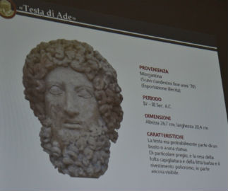 La presentazione è avvenuta nell’Auditorium “Falcone e Borsellino” del Tribunale di Enna, al tavolo dei relatori, moderati dal padrone di casa, il Procuratore Massimo Palmeri, si sono alternati: il Sostituto Procuratore Rio, che in modo vivace ha raccontata la rocambolesca avventura del recupero, il Maggiore Luigi Mancuso, il comandante dei carabinieri del TPC siciliano, che, constatata la presenza in sala di un bel gruppo di studenti di varie età, ha voluto evidenziare la necessità dell’educazione, fin dai primissimi anni di scuola, per la prevenzione di questi odiosi reati che non depauperano solo il nostro patrimonio culturale ma, con il saccheggio sistematico dei siti, privano gli studiosi e noi tutti della possibilità di ricostruire la nostra storia. È intervenuto il dottore Gaetano Pennino, Dirigente Generale dei BB.CC e dell’Idendità Siciliana e infine la dottoressa Laura Maniscalco, direttrice del Museo di Aidone, che ha illustrato il sito di San Francesco Bisconti, l’area sacra posta tra la Morgantina ellenistica e quella arcaica della Cittadella, da dove provengono oltre che la testa di Ade anche la cosiddetta Venere e gli Acroliti.