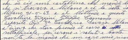 Le lettere allegate confermano solo quanto scritto dallo studente Calogero Laneri, che ho seguito con piacere nel suo studio, ovvero che il Vizzini nell’estate del ’43 si trovi sotto le armi nel 3° reggimento “Savoia Cavalleria”; il nocciolo della ricerca di Laneri consiste nel sostenere –documentandolo – che il Vizzini in seguito all’armistizio si sia arruolato nell’esercito della Repubblica Sociale Italiana dopo aver passato delle settimane in un campo di addestramento tedesco, il campo di Heuberg, e che sia stato un milite della Divisione Italia, inviata in territorio di Parma con funzioni di lotta antipartigiana, fino a pochi mesi prima che terminasse il secondo conflitto mondiale. Dall’indagine archivistica a oggi risulta questo e nient’altro.