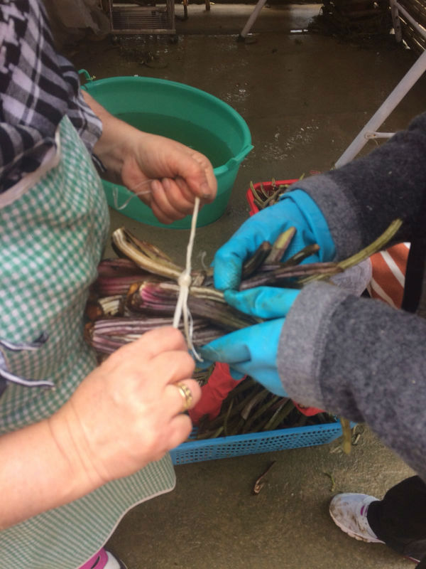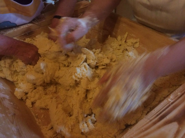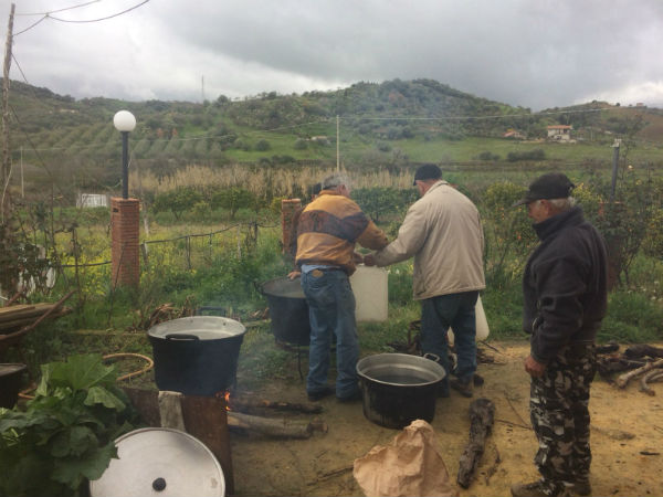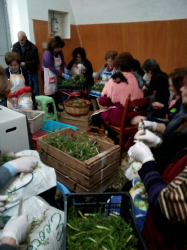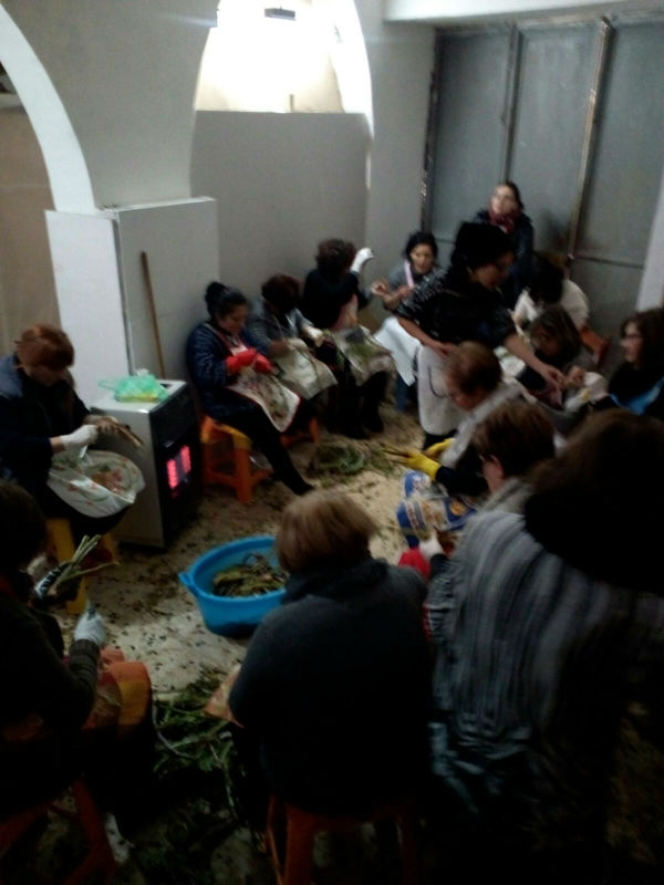 Il traficu delle donne che si riuniscono per mondare, cuocere e “abbirsare” l’altare, come sacerdotesse devote alla natura che rinasce e offre i suoi frutti. Agli uomini spetta l’approvvigionamento di cardi e finocchietti selvatici o anche la preparazione dei fuochi su cui poggeranno i calderoni per la cottura di enormi quantità di verdure di campo. I cardi ripuliti dalle mani delle anziane, che ammoniscono e rivedono il lavoro delle giovani. I finocchietti tagliuzzati e impastati con acqua e farina e il pane. Il pane lavorato con i simboli del vangelo. Ogni cosa di quel pane racconta la Parola e la tavolata era infatti anche “duttrina” ossia vangelo vivo per chi il vangelo non leggeva. La “Cuddura” di San Giuseppe è la più ricca di simboli del lavoro manuale: ascia, serra, martello, chiodi. Era artigiano San Giuseppe, aveva le mani callose di chi col lavoro suo porta il pane a casa. E a lui il traficu è gradito ed è per avere la grazia o ringraziare per la grazia ricevuta che si fa l’artaru.