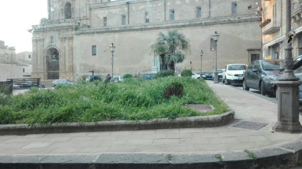 L’unico intervento eseguito dopo la ripavimentazione della piazza è stata la piantumazione di alcune palme, sin da subito abbandonate a se stesse, oggi soffocate dalla vegetazione spontanea.
