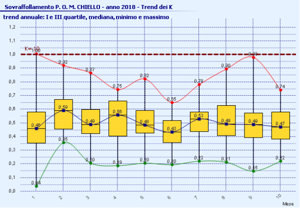 Di seguito si riportano sinteticamente e graficamente gli indicatori che descrivono i tempi di impegno dei Pronto Soccorso dell’Asp di Enna. Il sovraffollamento si verifica al superamento della linea K. In ordine di presentazione il primo grafico rappresenta i tempi di impegno su base assoluta mensile, il secondo su base assoluta giornaliera per il periodo considerato (Gennaio – Settembre), il terzo il trend delle distribuzioni dei tempi di impegno con i picchi di minimo e massimo mensili.