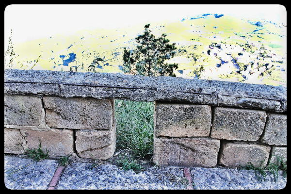 Enna. Muretto in pessime condizioni nell’anello attorno al Castello di Lombardia, il punto in fotografia trovasi pressi vasche dell’acqua a guardare Enna bassa. Come ben si vede è pericoloso sia strutturalmente che per altezza, circa 60/70 cm dal suolo. Pericoloso per adulti e soprattutto bambini, e per eventuale crollo nella strada sottostante, la San Calogero.