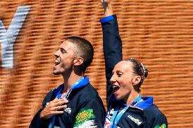GWANGJU (COREA DEL SUD) (ITALPRESS) – Manila Flamini e Giorgio Minisini hanno vinto la medaglia d’argento nel duo misto ai Mondiali di sincro in Corea del Sud. I due laziali, con un bottino di 91.8333 punti, si sono arresi solo ai russi Mayya Gurbanberdieva e Aleksandr Maltesev, oro con 92.9667. Per Flamini si è trattato dell’ultima gara dopo 16 anni di azzurro, 14 di nazionale A, con quattro medaglie iridate, tra cui lo storico successo nel 2017 nel duo misto tecnico, 13 europee e il quinto posto olimpico a Rio de Janeiro nel 2016 con la squadra. Le vice campionesse europee del combinato Beatrice Callegari, Linda Cerruti, Costanza Di Camillo, Gemma Galli, Enrica Piccoli, Domiziana Cavanna, Francesca Deidda, Costanza Ferro, Alessia Pezone e Federica Sala confermano invece il quinto posto dei preliminari. Oro alla Russia che tocca i 98 punti, seguita dalla Cina che cresce e raggiunge i 96.5667. I tuffatori azzurri si congedano dal Nambu University Municipal Aquatics Center di Gwangju. Nell’ultima gara che li ha visti protagonisti – la finale del trampolino tre metri mixed – Maicol Verzotto e Elena Bertocchi, campioni d’Europa a Kiev 2017, chiudono al 13esimo posto. Oro agli australiani Maddison Keeny e Matthew Carter.