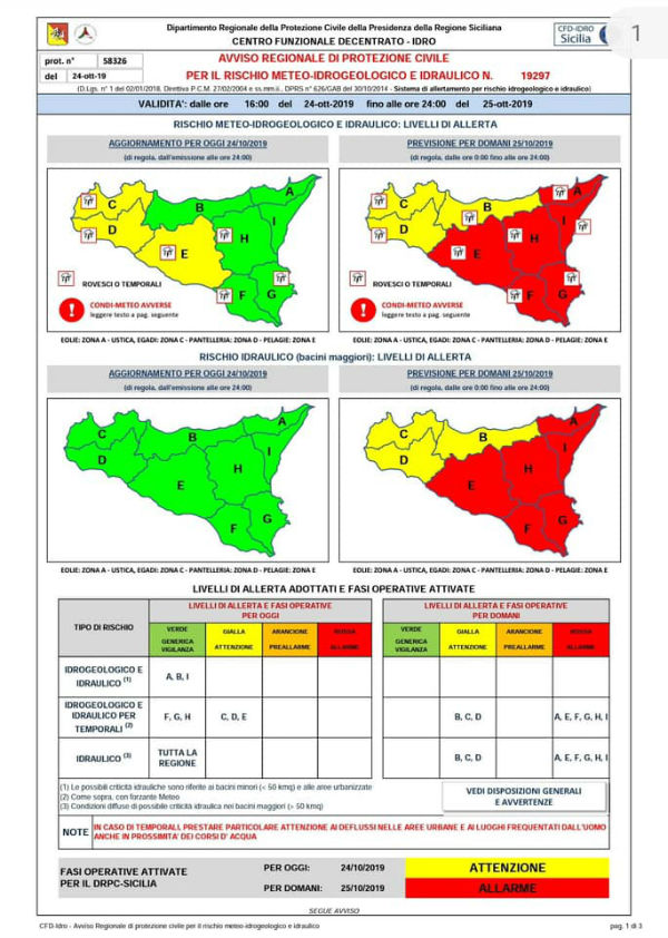 I bollettini di allarme meteo, emessi dal Centro funzionale decentrato Idro del Dipartimento regionale e del Dipartimento Nazionale, danno una situazione di allarme ROSSO nel territorio ennese.