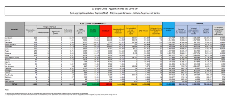 Covid, 951 nuovi casi e 30 morti nelle ultime 24 ore