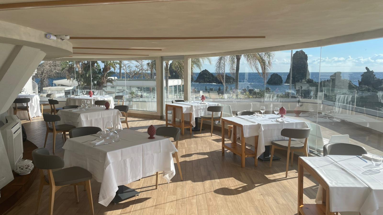 A rendere ancor più speciale questa serata sarà la location: la terrazza invernale del Grand Hotel Faraglioni, recentemente rinnovata con splendide vetrate panoramiche, offre una vista spettacolare sui Faraglioni di Aci Trezza. Lo spazio, caratterizzato da un design raffinato con predominanza del blu scuro che richiama il colore del mare antistante, rappresenta un continuum tra la bellezza del paesaggio esterno e l’eleganza della struttura.