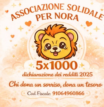 Con l’associazione solidale  per Nora , fondata nel 2020, chiedono che il 5 per mille possa essere donato a loro per aiutare economicamente tutte quelle famiglie  che si trovano a dovere affrontare viaggi e lungodegenze nel tentativo di aiutare i figli affetti da tumori infantili. “ E’ ingiusto che per curare nostra figlia dobbiamo fare oltre mille chilometri esponendoci a spese esose oltre che disagi per noi e principalmente per la bimba – dice il papà di Noemi.