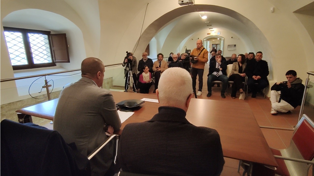 d – L’incontro con i giornalisti nel Palazzo Trigona